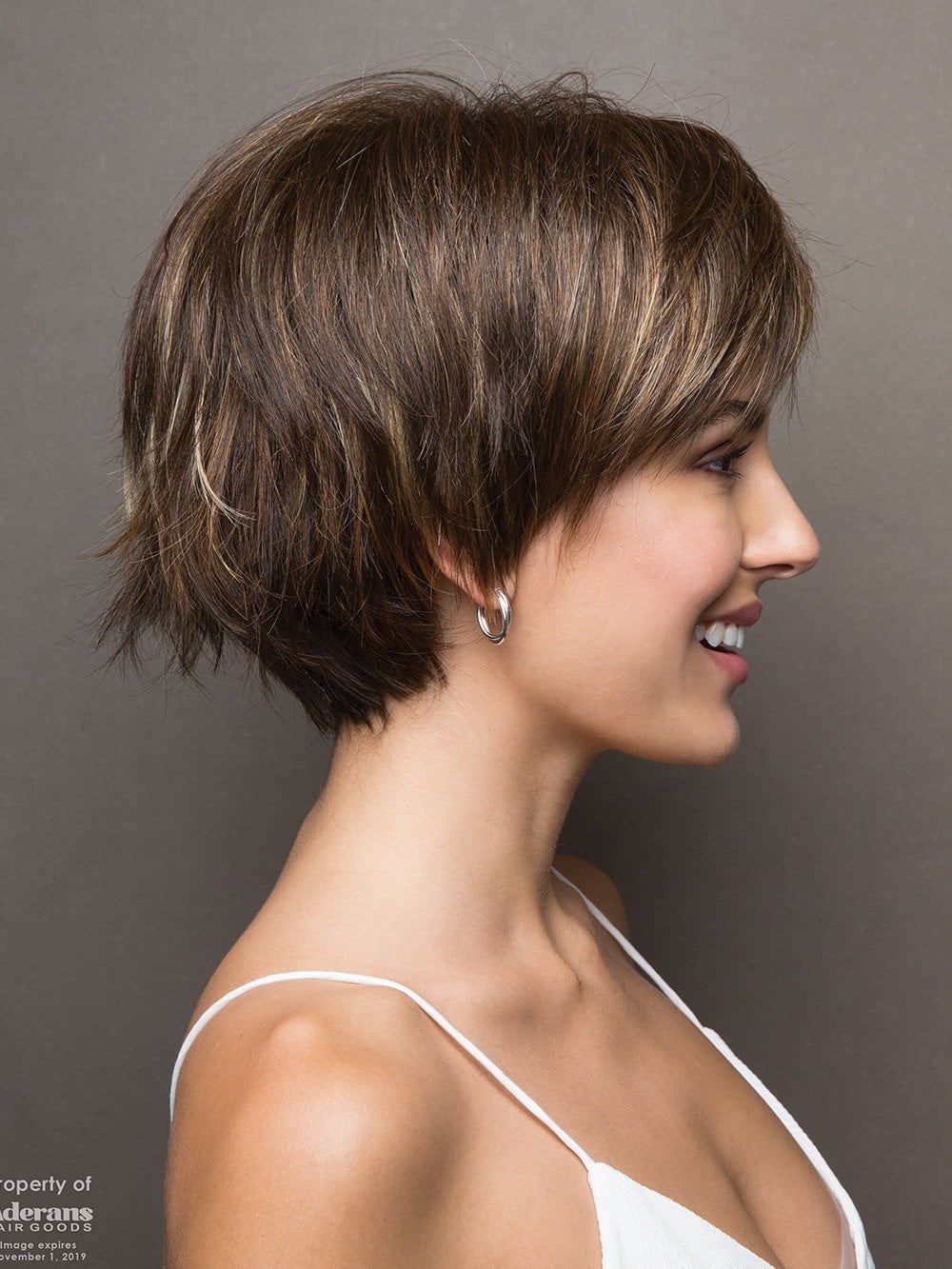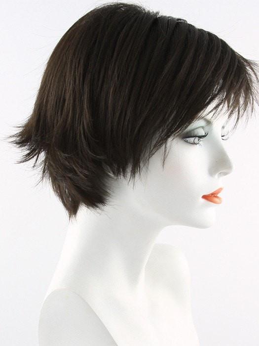 Morgan by Noriko short wig style made of synthetic hair. Featuring a full bang and subtle, but spunky, flared tips at the nape. Made with a traditional cap construction will ensure the volume and style to last all day long. Watch Noriko Morgan video review for more details.