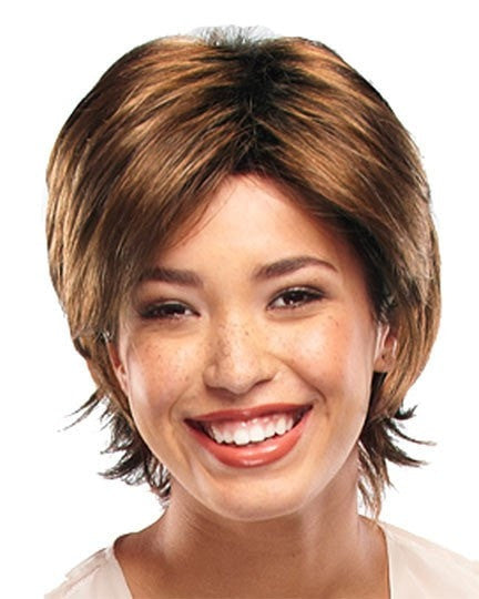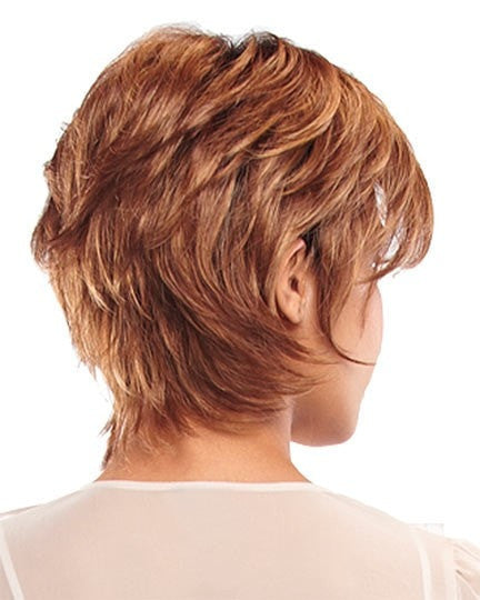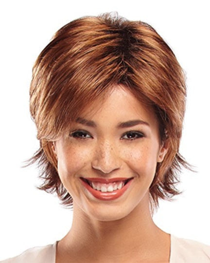 Nina by Jon Renau is a stylishly a short length razor textured shag look. These looks are easy to style and maintain. To create a textured salon inspired look use hairspray or shaping spray.