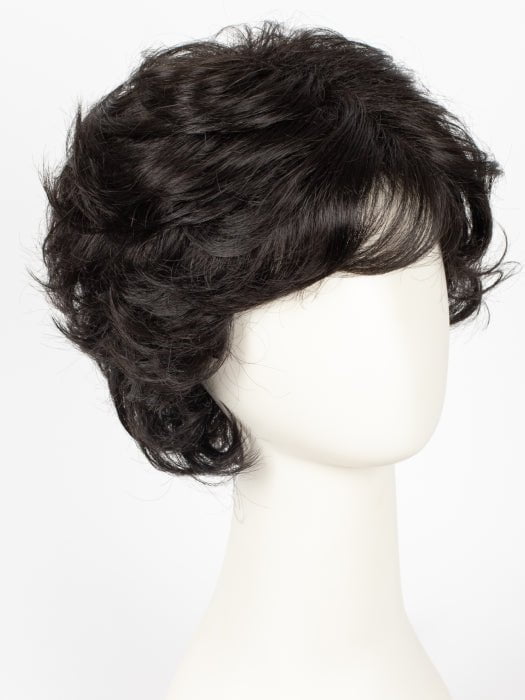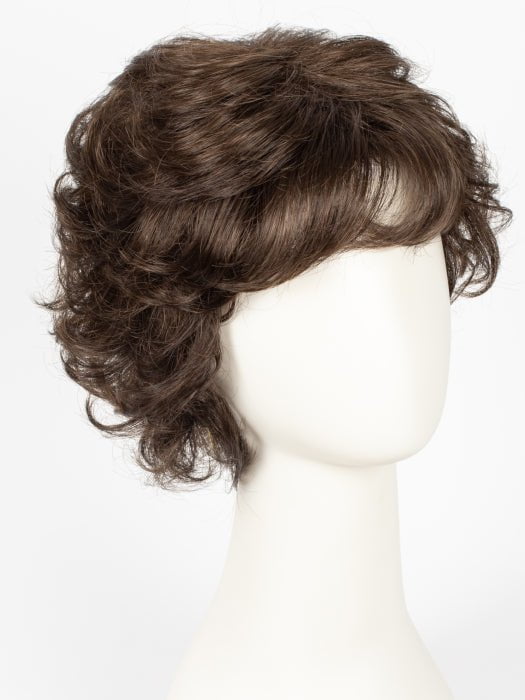 Short, loosely curled styled wig with layered sides and crown for added volume and ultra-lightweight construction for a comfortable fit. Also available in shades of grey.