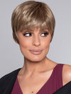 The Pixie Wig by Ellen Wille is from the 2019 Changes collection and is a super classic, short style. Pixie is light as a feather and incredibly comfortable to wear. To ensure this style is cool and as lightweight as possible, the main body has open wefts meaning the hair has been stitched by machine onto very thin strips. The bangs are delicately thinned out so it doesn't sit too heavy on your forehead. The crown area has layers that have been textured so that they have a lifelike, low density. Along with a small monofilament crown circle, which allows the hair to have a natural growth pattern. Finishing with a nice snug tapered hairline. A true no-fuss shake and go wig right out of the box.