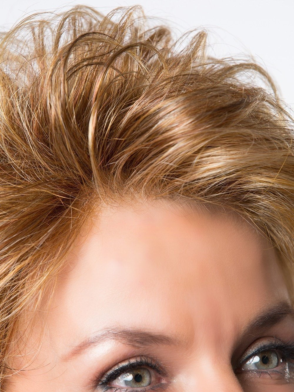The Platinum Confidence Wig by Toni Brattin features a Transparent Monofilament Lace Front Hairline for Limitless Off-the-Face Styling Versatility. All-Over Soft Body Curls and a Soft Shag Neckline define the No Fuss, Salon Cut Styling No Fuss Short Curls.