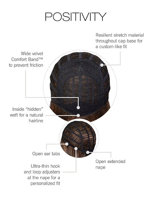 Positivity by Gabor is an undone, chin-length bob with perfectly imperfect loose waves. The lightweight, textured bang provides the flexibility for different styling options such as wearing it down, giving it a piecy look, or sweeping it to the side. The personal fit cap provides extra comfort for all day wear.