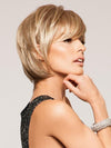 Another cool innovation by Gabor wigs! Prodigy is a short, sleek, ready to wear lace front wig with a hand-knotted top. The lace front offers a life-like hairline and allows you to style the hair off of the face. The hand-knotted top gives you even more styling options allowing you to style the hair in any direction, minimizes bulk and creating the illusion of natural hair growth. You will love the wispy, airy movement of all of the layers and the face framing fringe. Look like you stepped off the runway in this stylish short wig!