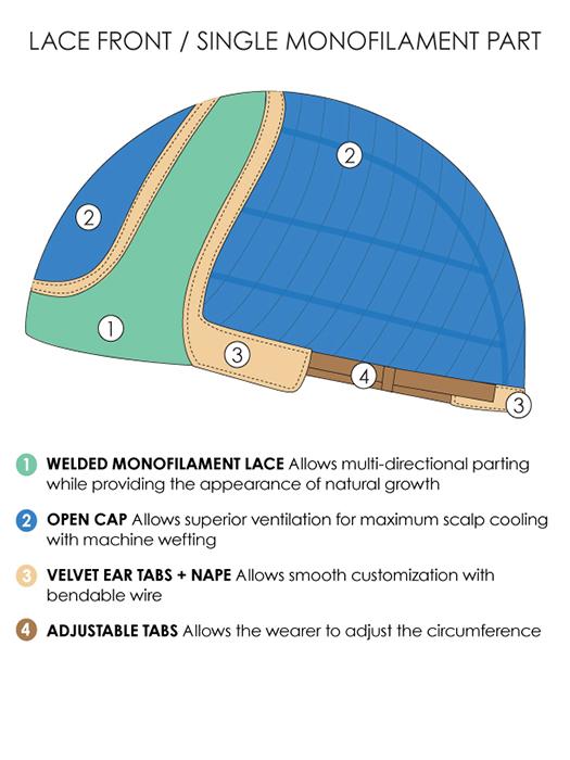 - Welded Monofilament Lace - Allows multi-directional parting while providing the appearance of natural growth.