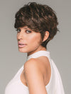 The Rina Wig by Rene of Paris is feathery layered with a graduated look in the back, along with a soft wispy fringe. The side-swept fringe can be styled down or up for a change in look. This soft layered short pixie can be brushed over the top to create a touch of height. Also available in silver-stone grey.
