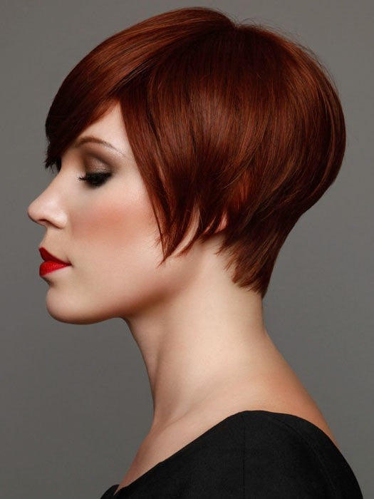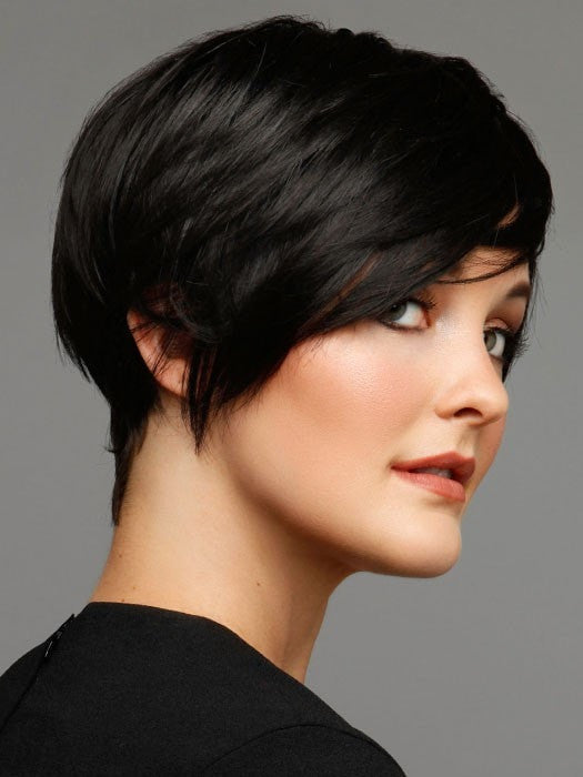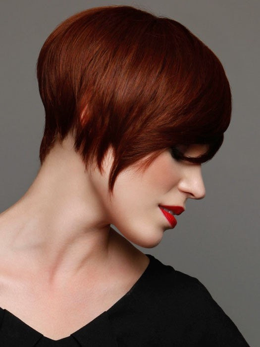 Short Bob Lace Front wig by LUXHAIR ™ HOW ™ created by Tabatha Coffey is a sleek short bob. Light tapered layers throughout the style create beautiful dimension and movement in the cut. A side-swept off set fringe gives this style a fresh modern look.