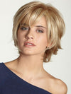 Best Selling Monofilament Style! This natural flip style has long crown layers graduating to a slightly tapered nape. The monofilament top allows this style to be brushed and parted several ways, allowing for the realistic look that women prefer.