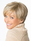 Uptown by Christie Brinkley is a face-framing boy cut. The all-over subtle layering gives this style beautiful, natural movement, and the expertly tapered edges have a salon-fresh look. This wig features a monofilament crown that creates the appearance of natural hair growth. The Natural Fit Cap™ self-adjusts for a custom-like, comfortable and secure fit. And the Excelle™ heat-friendly synthetic hair looks and feels like natural hair; plus it can be styled with heat tools. Uptown is part of the Hair2wear Christie Brinkley Wig Collection. Watch Christie Brinkley Uptown video review for more style details.