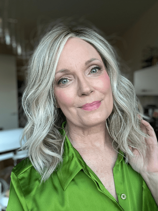 This is another beautiful style by Raquel Welch. I love the mid length waves and heat friendly fibres. The cap fits a true average and has a full mono top, which is great. I chose Shaded Iced Latte Macchiato, for a change to Shaded Biscuit, and I'm pleasantly surprised at how much Iike this ashy, cool toned blonde colour. My particular piece seems to have a lot more platinum highlights than my Upstage, in the same colour, which looks drab and grey toned but this piece is a definite improvement. I guess the blend of colours different on each style, but Wavy Day is lovely. I would highly recommend this style & colour, if you like an ashy toned blonde.