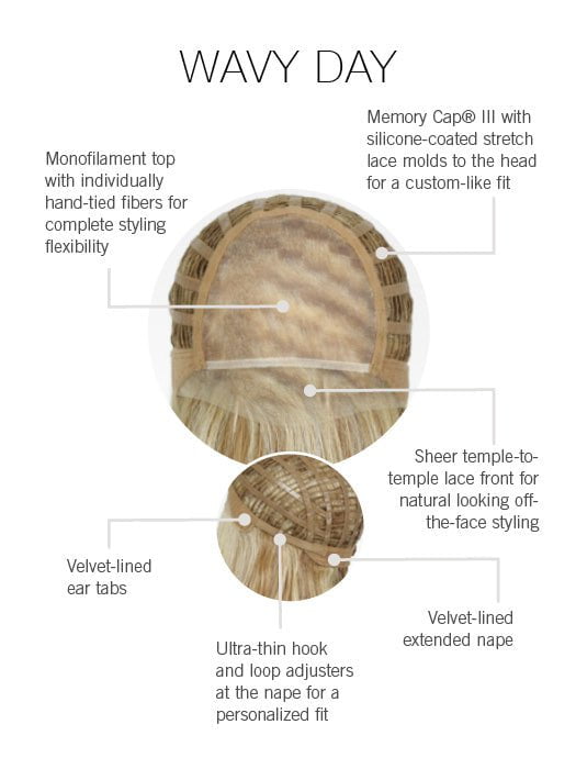 Wavy Day by Raquel Welch is the perfect all over one length lob with soft, styled waves hitting right at the shoulder! Featuring a lace front, monofilament top, and Tru2Life heat friendly synthetic fiber, Wavy Day will allow you endless styling options.